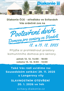 Pootevřené dveře Domova pro seniory ve Vendolí ve dnech 12.12.2025 a 13.12.2025